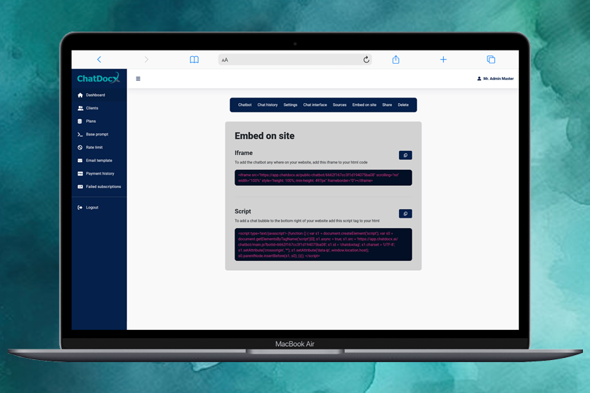 Generate Iframe & Script for adding it to your website