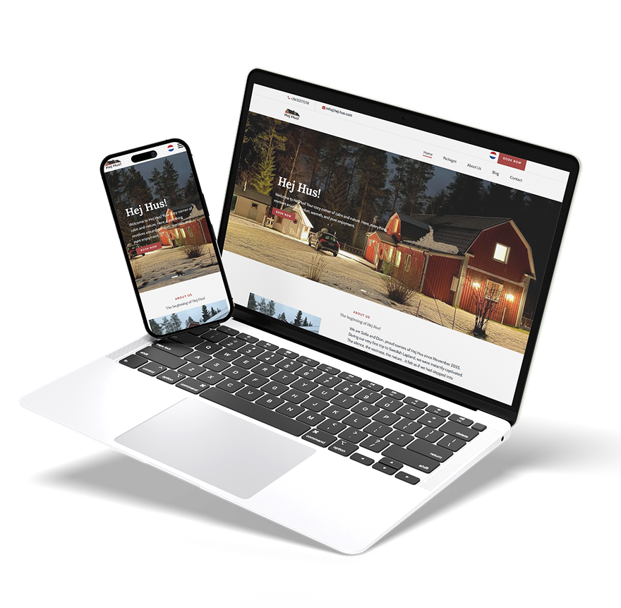 We developed a modern cabin booking website for Hej Hus, a nature-focused holiday stay designed for travelers looking to experience the peaceful landscapes of Lapland. The goal of the project was to create a simple and visually immersive platform where visitors can explore the property, check availability, and send booking inquiries for their Arctic stay. The website focuses on delivering a seamless booking journey while showcasing the unique experience of staying in a cozy Nordic cabin surrounded by forests and natural landscapes.